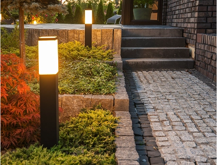 Good lighting highlights the best features of your landscape without causing harsh glare or light pollution. Downlighting is a great option to softly illuminate paths, patios, or walls. Motion sensors can add security while minimizing energy use, and smart lighting systems make it easy to adjust settings for any occasion.