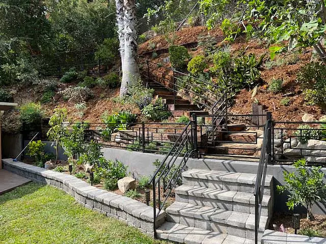- This project consisted of a complete overhaul of both backyard and slope area to allow small, but growing family, to utilize the backyard space for entertaining and playtime for both their toddler and their two massive Leonberger dogs.