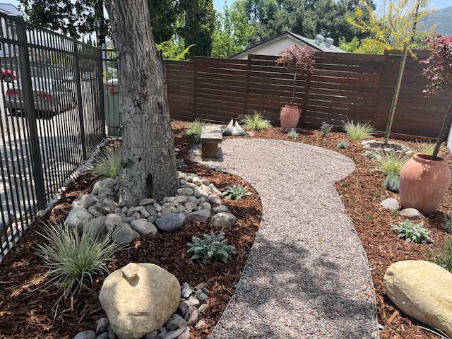 This project is an ideal example of a drought-tolerant landscape that fully maximizes the large back and front yard areas to create both aesthetic and functional spaces. The backyard consists of paver paths and a decomposed granite patio, as well as large swaths of very drought-tolerant ground cover.QUEMADA ROAD PROJECT DESCRIPTION